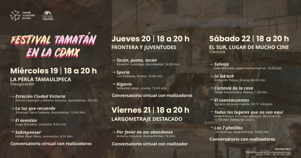 El Festival Tamatán expande su alcance, para llevar cada año una muestra de lo mejor del evento fílmico a la capital del país, en alianza con la Oficina de Representación del Gobierno de Tamaulipas y la Secretaría de Cultura de México.